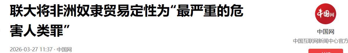 3月25日恰逢奴隶制和跨大西洋贩卖奴隶行为受害者国际纪念日,由加纳牵头提出的决议,不仅给持续300多年的非洲奴隶贸易定了性,还明确要求相关国家道歉、赔偿、归还文物。